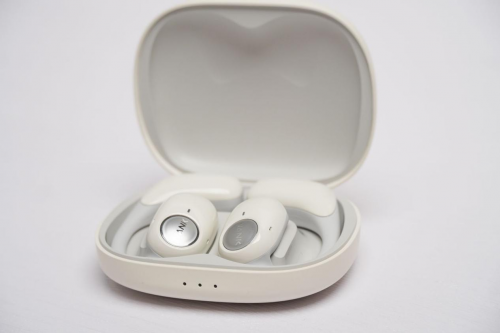 佩戴体验这款耳机单耳约8.7g,整体非常轻盈,流线型软质耳挂+亲肤材质,让它贴合耳廓时几乎感觉不到负担。即便连续佩戴数小时,也不易出现压迫或酸胀。挂耳支撑足够柔韧,跑步、跳跃中也能稳稳固定,不必频繁调整。